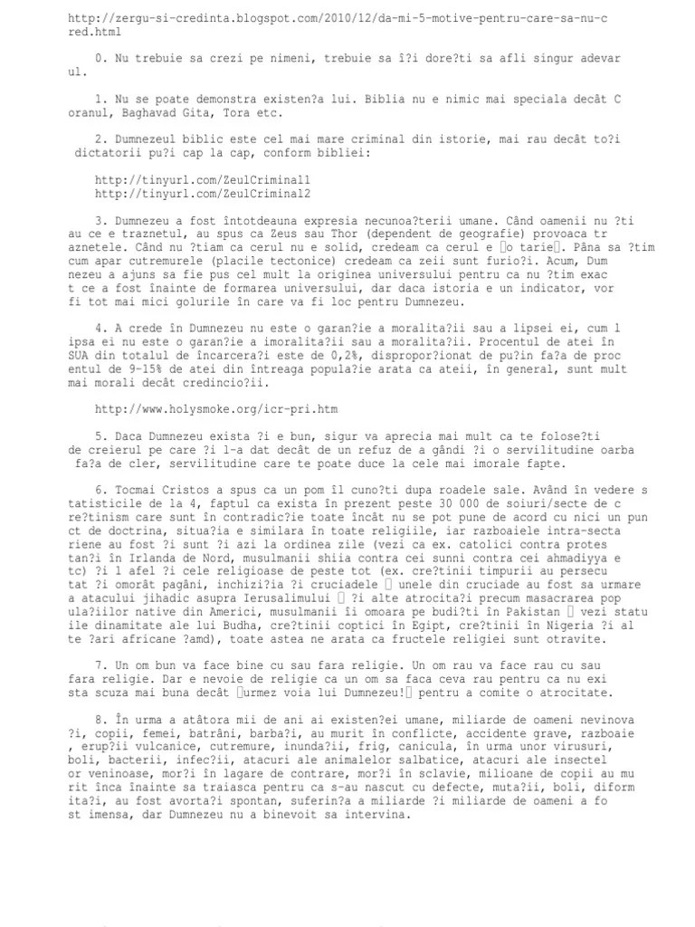 Fie că întâlnim oameni care au o altă religie pe care o susţin sau pentru că este tabu în conversaţiile sociale. " cred, dar nu prea merg la biserica"? Noiembrie 28, 2013 de miculcritic. 10.10.2016 · semn că îţi trebuie mai multă credinţă pentru a crede în dumnezeul care nu își demonstrează iubirea faţă de om prin miracole. De cate ori ati auzit expresia: 12.02.2009 · credinta fara de fapte, moarta este. Caci, daca va intra in adunarea voastra un om cu inele de aur in degete, in haina stralucita, si va intra si un sarac, in haina murdara, 3. Acei care combat religia, inainte de a o combate sa invete cel putin ce fel este ea. (pascal) adevarata stiinta e esential religioasa. (h. About press copyright contact us creators advertise developers terms privacy policy & safety how youtube works test new features press copyright contact us creators. Ca exista tot felul de dogme absolut inutile ma deranjeaza si pe mine, sincer, si nici nu le respect. Adica fara fundament stiintific , fara nicio relevanta... Fie că întâlnim oameni care au o altă religie pe care o susţin sau pentru că este tabu în conversaţiile sociale.