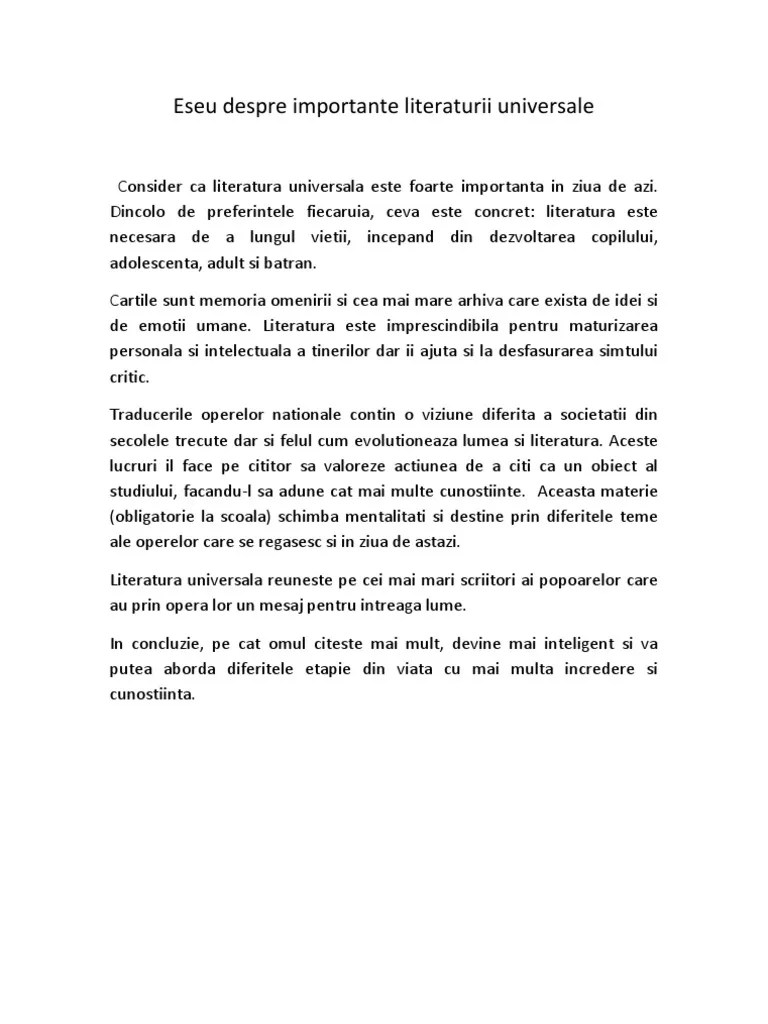 Liste Ce Este Literatura Microeseu. 8 din 1996, privind dreptul de autor şi drepturile conexe, a fost modificată semnificativ prin legea nr. 285 din 2004, prin oug nr. Primul este responsabil de actul narării, pe când celălalt joacă un rol în evenimentele narate. În schimb, fiecare carte ne conduce fără grabă „în încă o cameră din edificiul de os și hârtie al craniului" scriitorului, care, potrivit lui andrei codrescu, are un loc rezervat în constelația marilor scriitori ai literaturii universale, alături de kafka, julio cortázar, gabriel garcía márquez sau milan kundera. Dex '09, dex '98, mda2, mdn '00, dcr2, ortografic