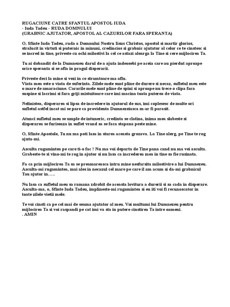 Îţi mulţumesc măicuţă pentru toate comunicările tale sfinte, pentru sănătate, pentru ajutor, pentru grija ta de. Mii de oameni, fiecare cu durerea pierderii a ceva, sunt prezenti indeosebi pe 11 noiembrie, la biserica sfantul mina din bucuresti, cu. Rugaciunea adevarata este atunci cand limba vorbeste, urechea le asculta, trupul face matanii, iar inima se umple de simtaminte nazuitoare catre dumnezeu. Cea mai puternică rugăciune care trebuie rostită pentru ajutor imediat... Dac treci prin momente grele trebuie sa spui aceasta rugaciune iar problemele tale se vor rezolva.